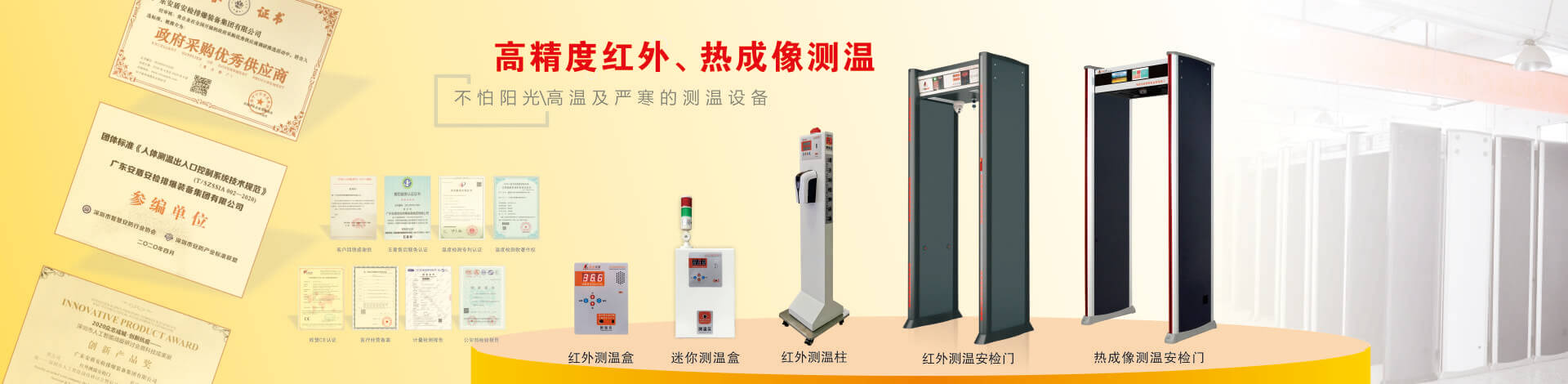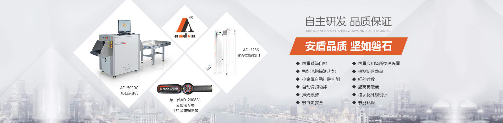 目前公司技術(shù)底蘊(yùn)日益豐厚,擁有多項(xiàng)國(guó)家專(zhuān)利,在產(chǎn)品開(kāi)發(fā)和創(chuàng)新方面有較深的制造經(jīng)驗(yàn)?!鞍捕芷焚|(zhì) 堅(jiān)如磐石”是安盾人永恒不變的發(fā)展理念,公司目前已通過(guò)國(guó)際質(zhì)量體系認(rèn)證、國(guó)際環(huán)境體系認(rèn)證、國(guó)際職業(yè)健康體系認(rèn)證、產(chǎn)品已通過(guò)國(guó)家安全防范報(bào)警系統(tǒng)檢測(cè)中心和公安部安全與用電子產(chǎn)品質(zhì)量檢測(cè)中心合格認(rèn)證,并取得所有型號(hào)檢測(cè)報(bào)告,《GB15210-2003通過(guò)式金屬探測(cè)門(mén)》標(biāo)準(zhǔn);并獲得國(guó)家高新技術(shù)企業(yè)認(rèn)證、國(guó)家AAA級(jí)信用認(rèn)證,歐盟CE認(rèn)證、ROHS認(rèn)證、美國(guó)FCC認(rèn)證、廣東職業(yè)衛(wèi)生檢測(cè)中心頒發(fā)的檢測(cè)報(bào)告、東莞市環(huán)境保護(hù)局頒發(fā)的《輻射安全許可證》,中國(guó)人民解放軍認(rèn)證產(chǎn)品、中華人民共和國(guó)進(jìn)出口企業(yè)、愛(ài)心公益企業(yè)等榮譽(yù)稱(chēng)號(hào);先后被當(dāng)選為中國(guó)安全防范產(chǎn)品行業(yè)協(xié)會(huì)會(huì)員單位、廣東安防行業(yè)協(xié)會(huì)理事單位、東莞市安防行業(yè)協(xié)會(huì)常務(wù)副會(huì)長(zhǎng)單位、中國(guó)安檢排爆聯(lián)盟常務(wù)理事單位、連續(xù)五年榮獲廣東省守合同重信用企業(yè)、中國(guó)警用裝備十大品牌、中國(guó)十大特種裝備品牌、科技型中小企業(yè)、廣東省高新技術(shù)產(chǎn)品等榮譽(yù)稱(chēng)號(hào)、安盾集團(tuán)平均每年服務(wù)至少200場(chǎng)大型活動(dòng)安保任務(wù)。